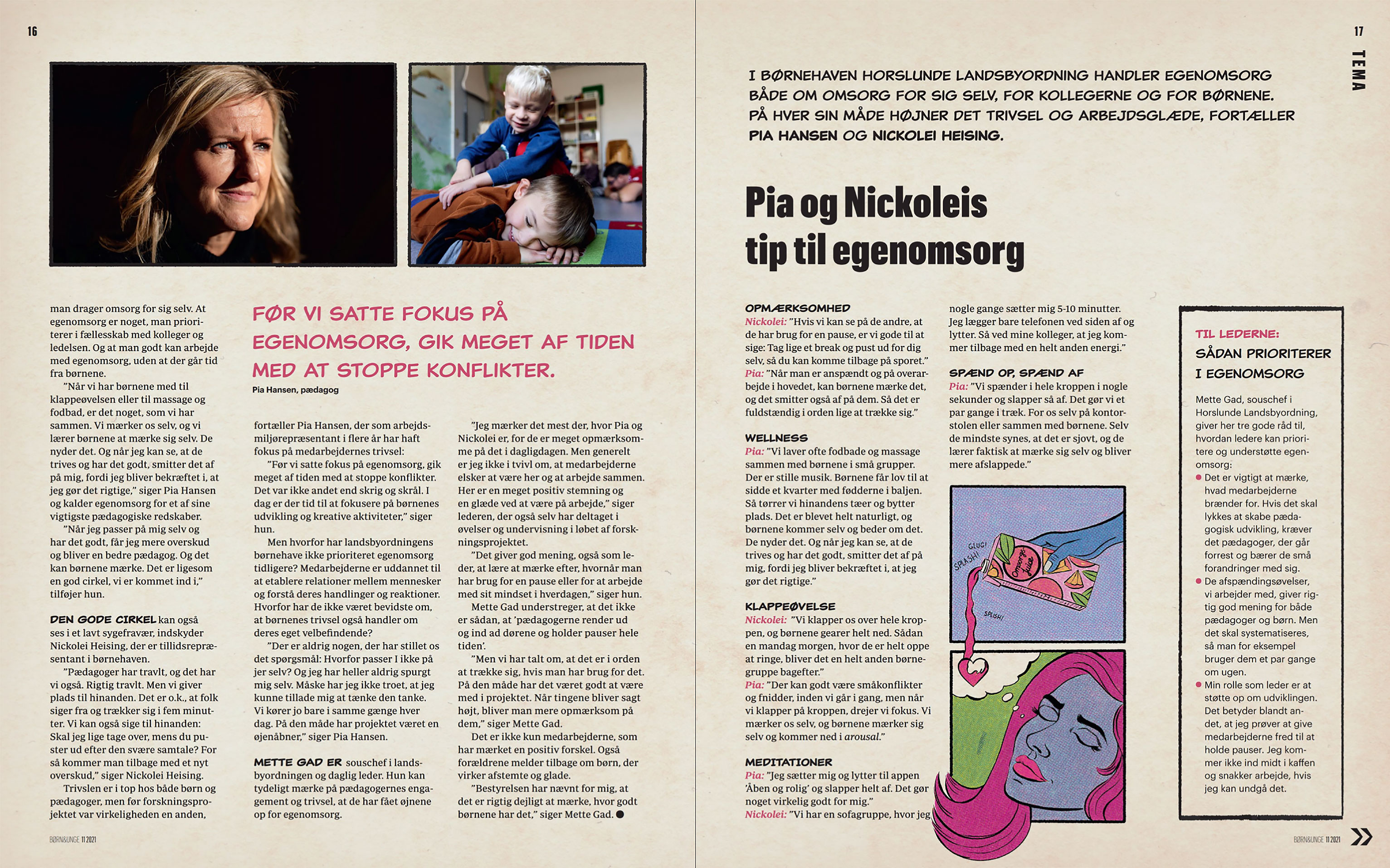Editorial illustrations for the Danish kindergarten teacher magazine.
