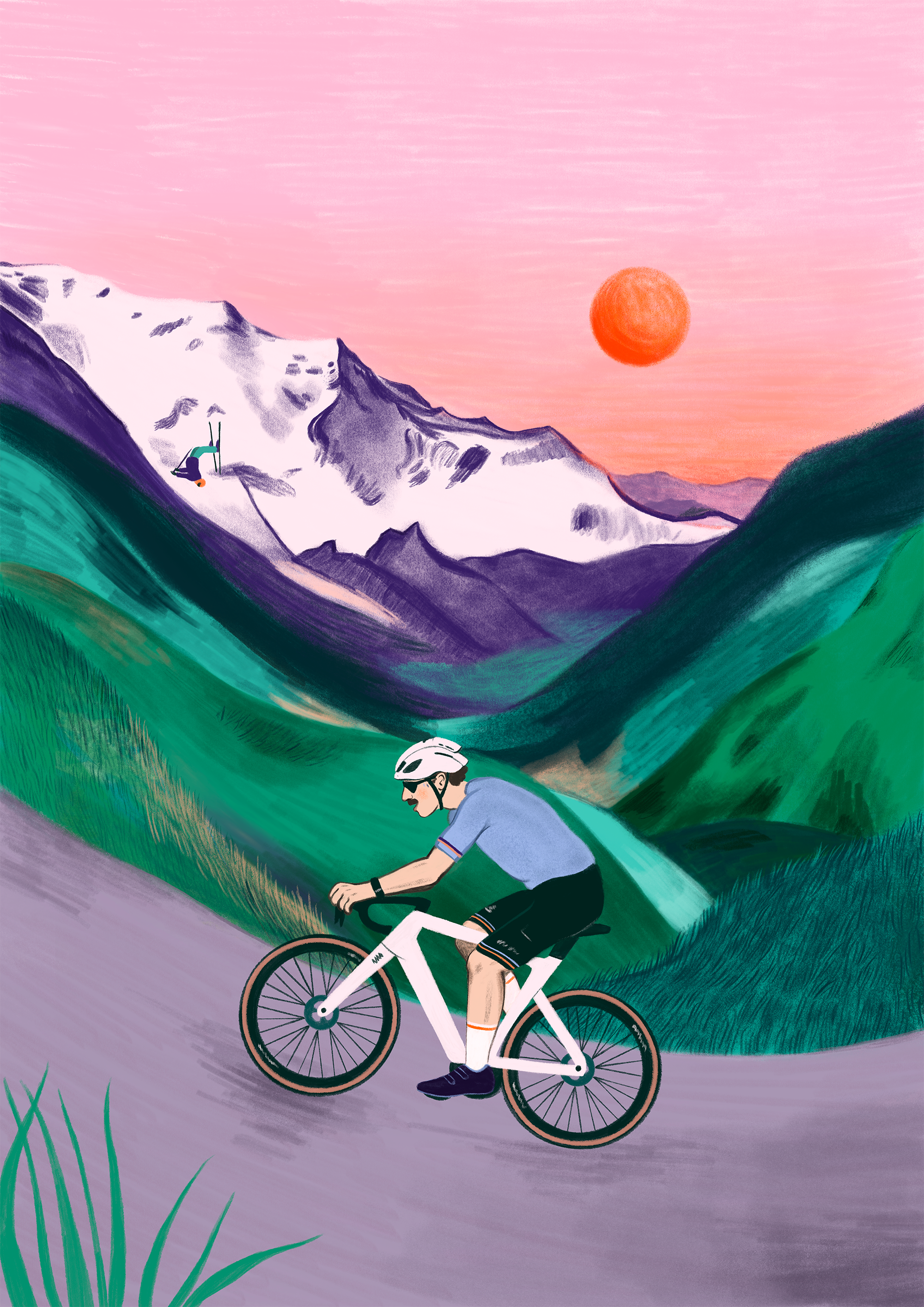 Poster illustration inspired by the mountain view from the ske resort Val d´Isere.
